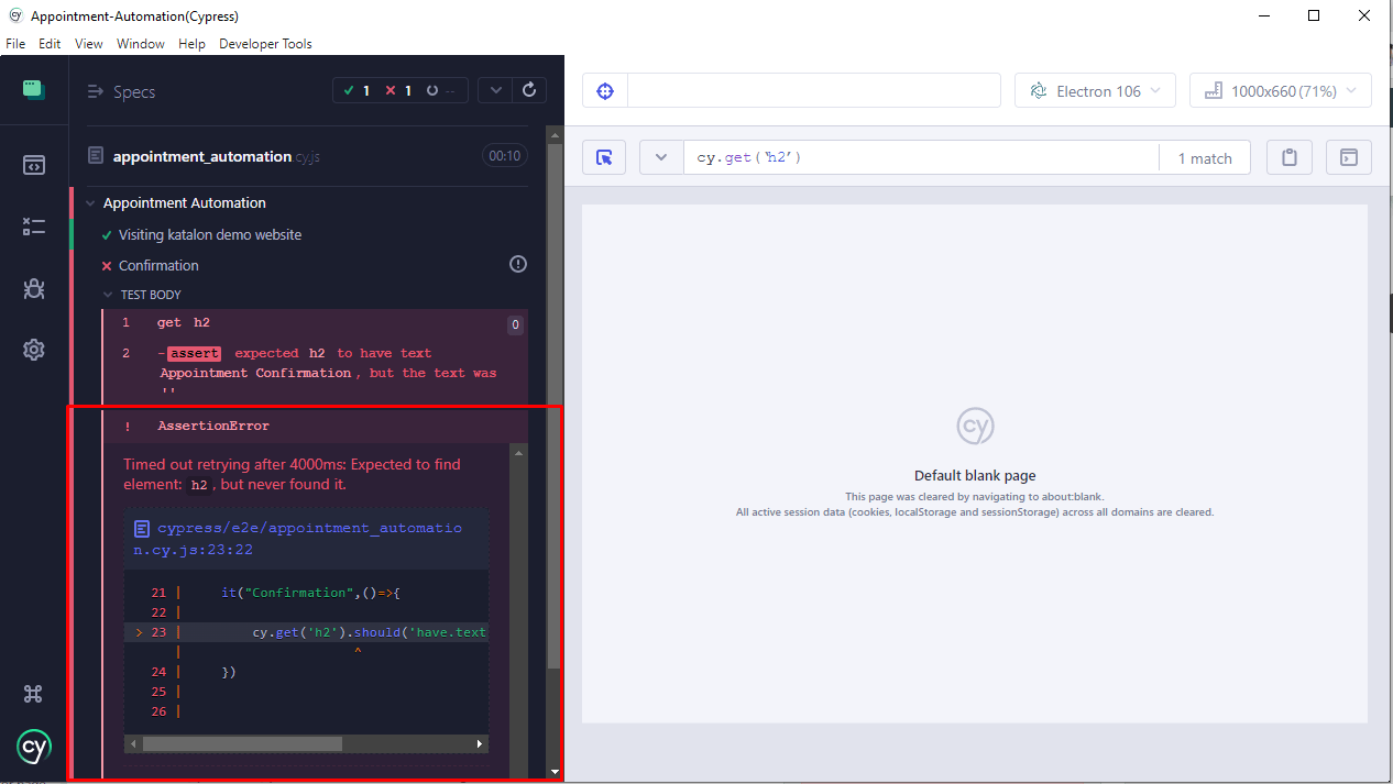 To address the issue of not finding the element using cy.get(‘h2’), you’ll need to manually set up the necessary data or state before each test case. Cypress provides a hook called beforeEach, which runs before each test case. You can use this hook to set up the required data or actions to ensure your test starts in the expected state.