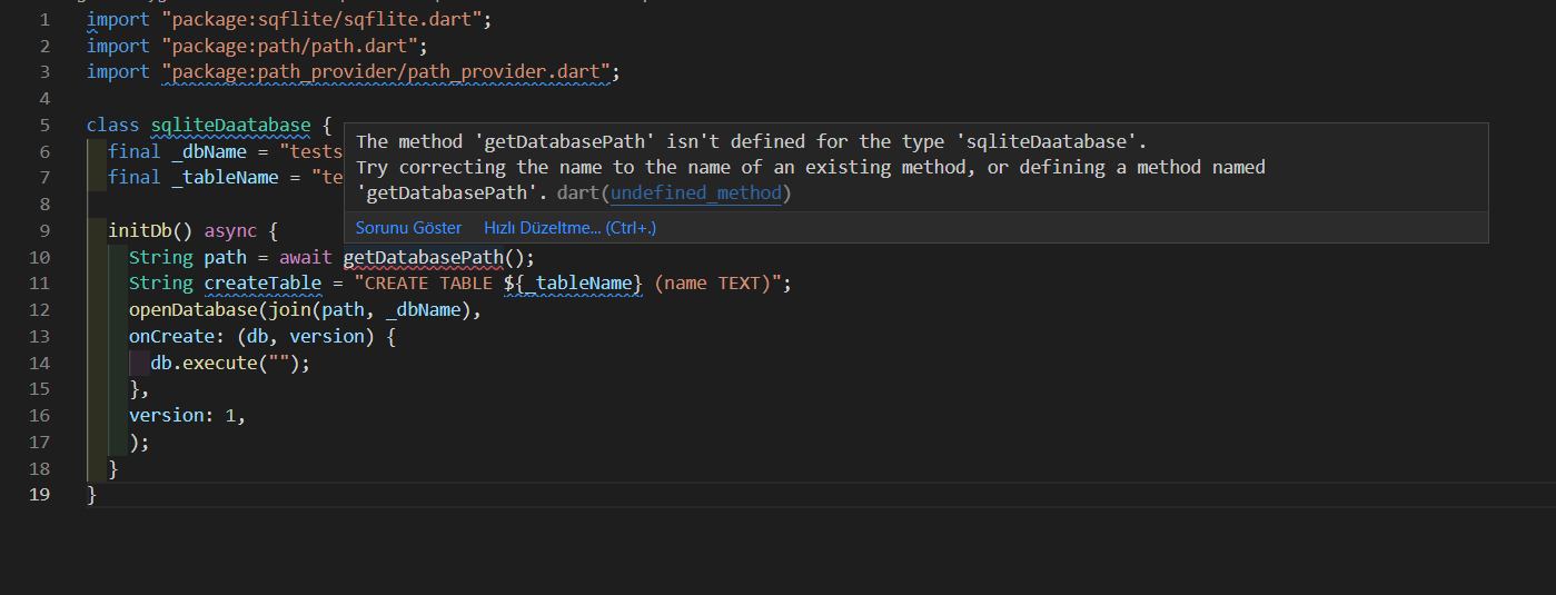 String createTable = "CREATE TABLE ${_tableName} (name TEXT)";