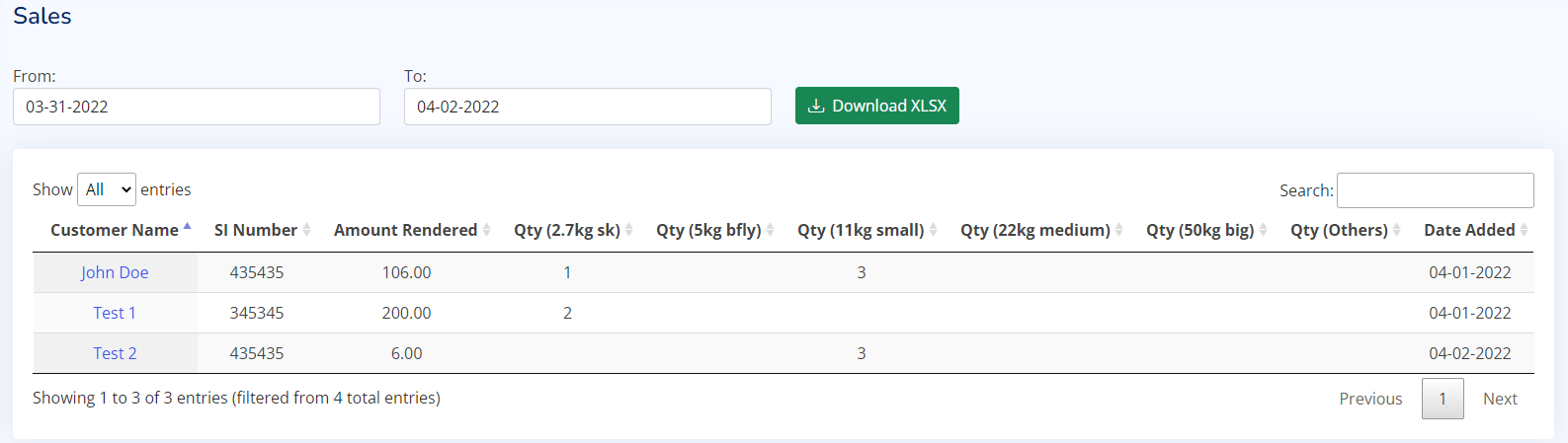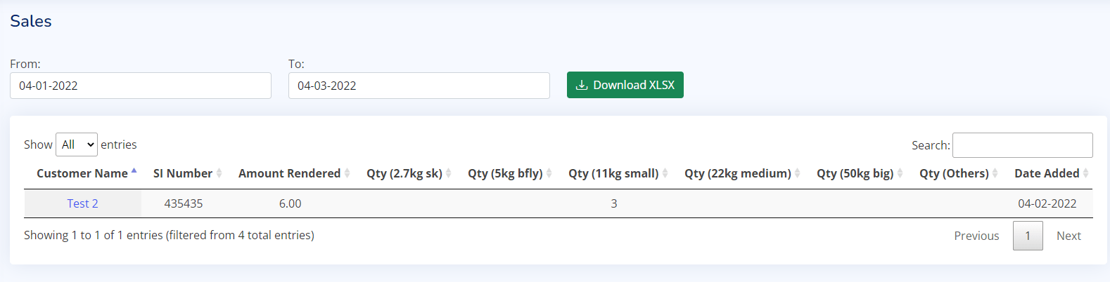 When i search from 04-01-2022 to 04-03-2022 . It doesnt show me the record of 04-01-2022