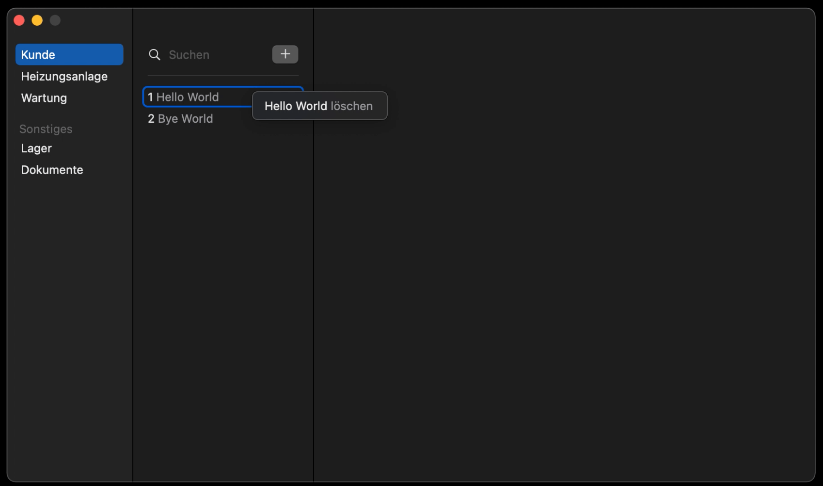 I want to delete a row from keydata if a user uses the .contextMenu { }, here "Hello World löschen".