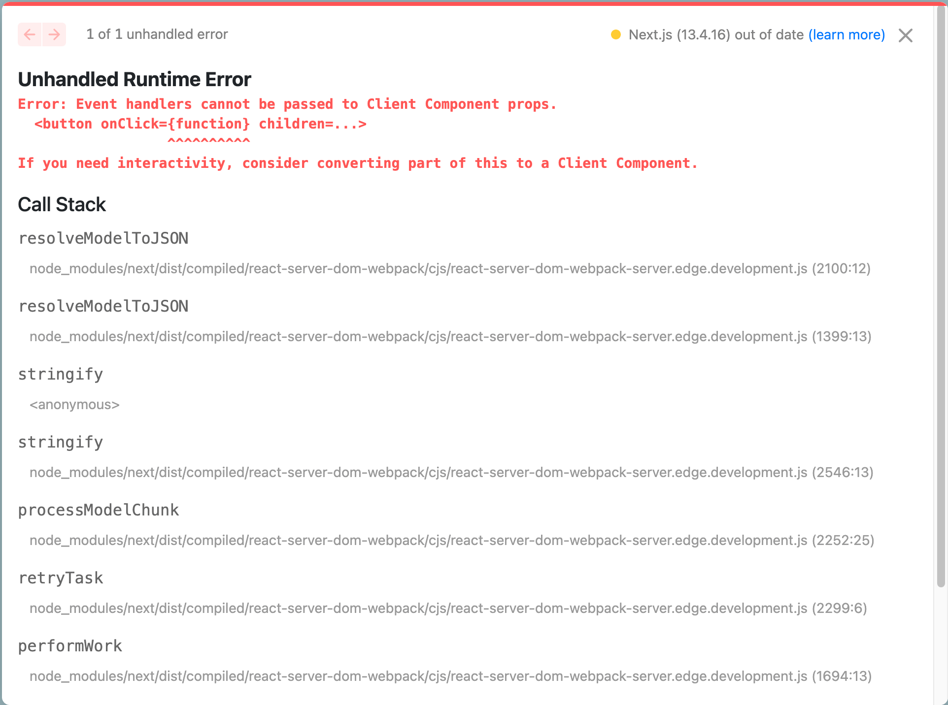 Unhandled Runtime Error Error: Event handlers cannot be passed to Client Component props.