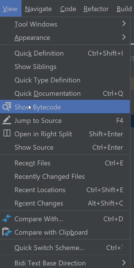 Note that the IntelliJ tool won’t work if the class is not compiled, since it won’t actually know what the exact bytecode is.