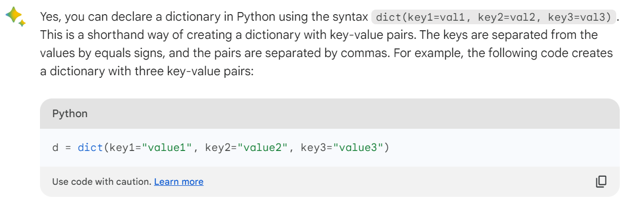 To confirm if ChatGPT may have suggested the wrong method, I asked the same question with Google Bard. Ever Bard is replying that this method can be used to create a dictionary. Am I missing something?