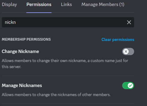 Additionally, it might be worth explicitly adding the "manage nicknames" permission as well.