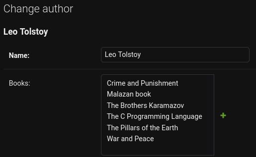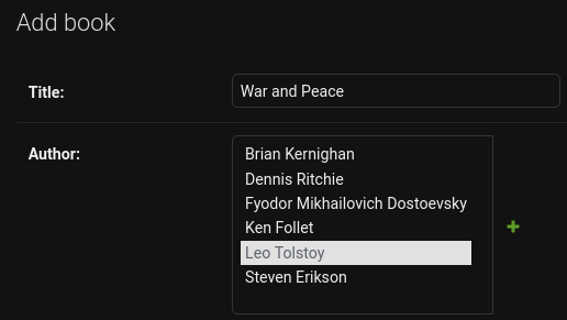 Then I created a new Book and assigned Leo Tolstoy as theAuthor: