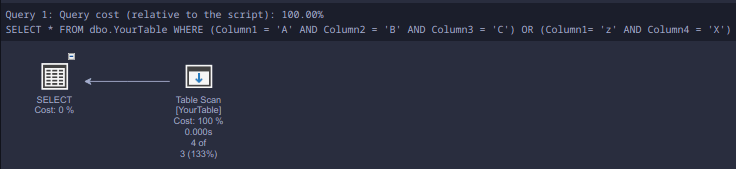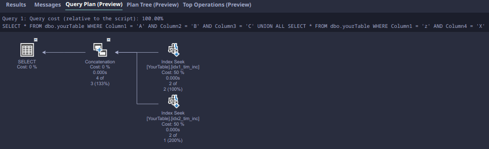 Notice this have 2 table scans, as there are no INCLUDEs (this is not Column5‘s fault, and I demonstrate this later)