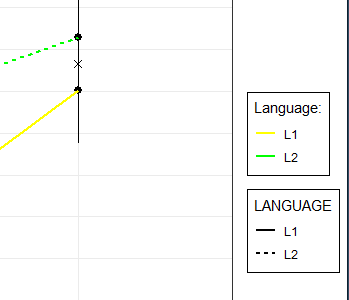 Obs: the legend variable is a categorical variable named "LANGUAGE" (in caps) with two levels (L1 and L2)