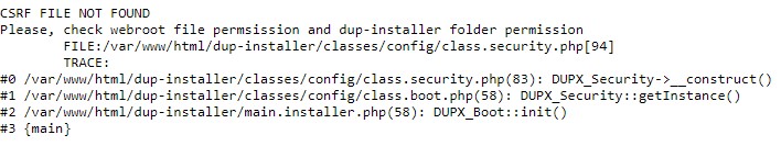 My dup-installer folder permissions are: drwxrwxrwx 8 www-data www-data 4096.