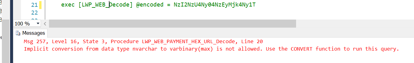 SELECT @encoded = CONVERT(VARBINARY(MAX), @string)