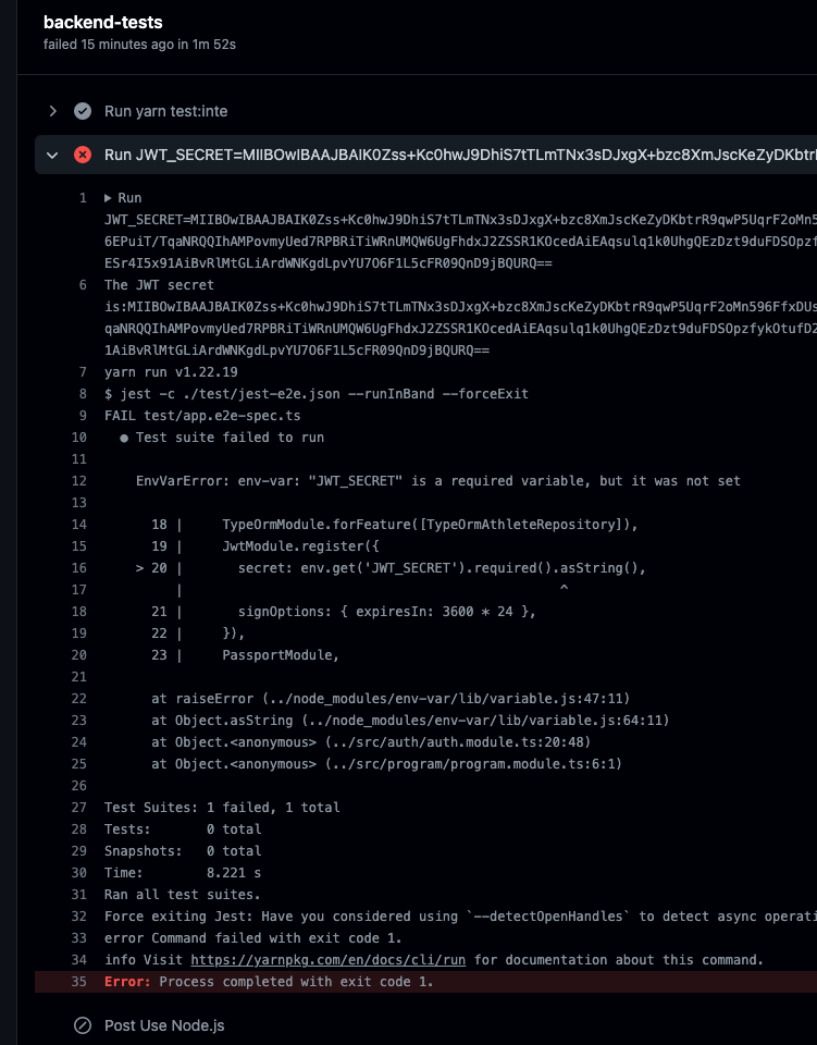 EnvVarError: env-var: "JWT_SECRET" is a required variable, but it was not set
