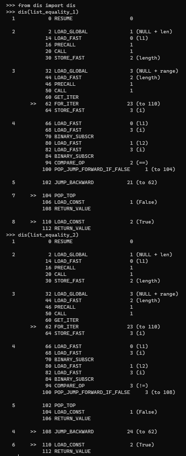 then let’s say that I want to know if the two lists are equal (There are a lot of ways to do this in Python and it’s not what I’m looking for, also this is not a good approach in Python to do this)