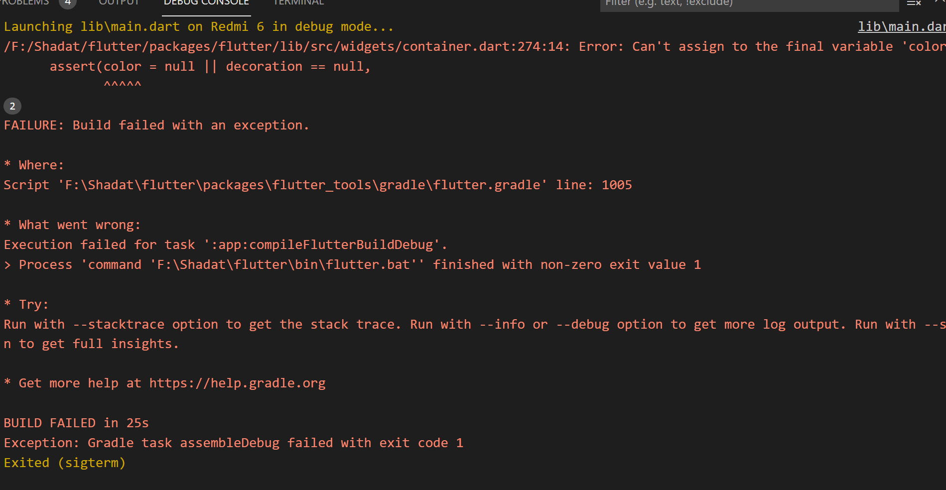 This is the full picture in debug console. I am doing flutter for 1 month. Can someone help me out?