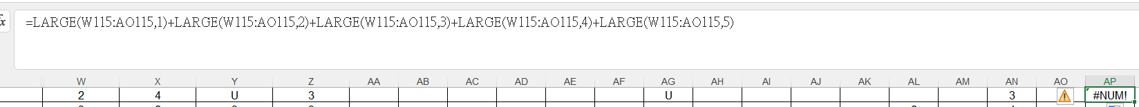 =SUM(IFERROR(LARGE(IFERROR(W115:AO115,""),ROW($1:$5)),""))