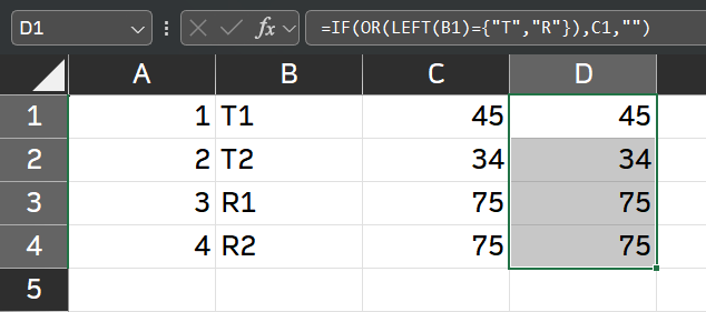 =IF(OR(LEFT(B1)={"T","R"}),C1,"")