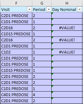 With the goal of extracting the numeric value after the "D" character in my Visit column. Some visits have 1 digit after the "D", some are 2, max will be 3 digits. However, the formula I’ve tried to use above is returning blanks and #VALUE! only. I figured the number character between the D and the space would work, but then I realize not all will have the space (see C2D16). Can someone explain what I am doing incorrectly?