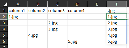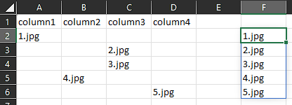 I have an Excel sheet that has 1 image in each row but its not in the same column and I want them to get them all together in a column.