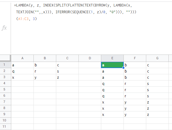 TEXTJOIN("",,x))), IFERROR(SEQUENCE(1, z)/0, "@"))), "")))