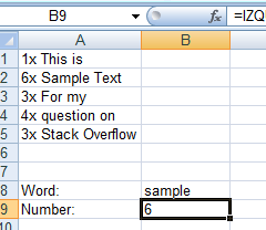 In A7, I would like to return the number at the beginning of the cell in which I find a certain piece of text. So, for example, if I search for the word "question" I would like to return the number 4.