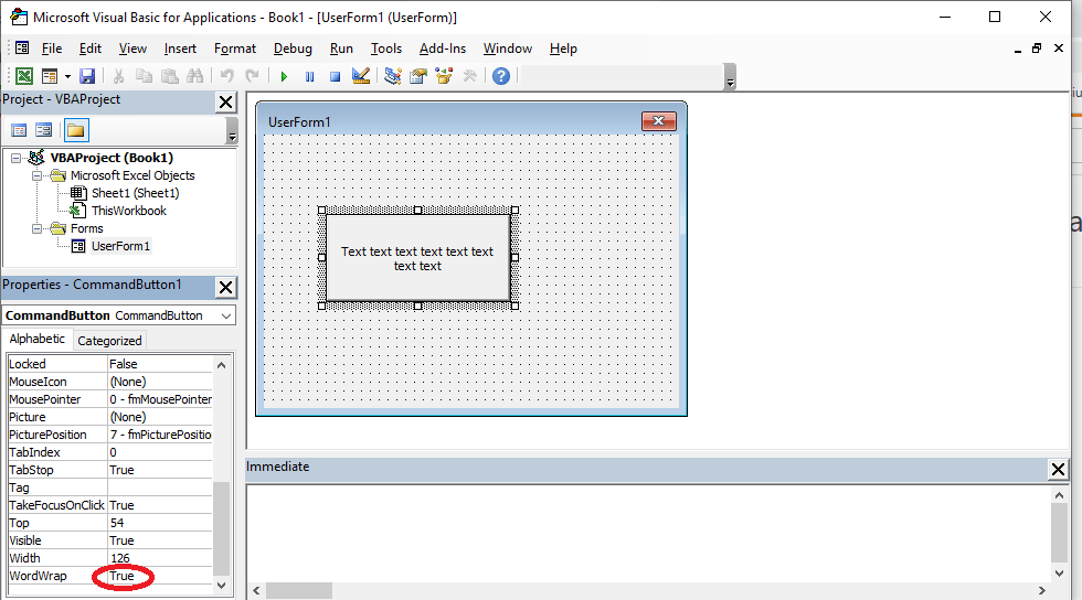 I’ve tried googling and not had much luck, right clicking the button in the UserForm edit screen and clicking properties also doesn’t do anything.