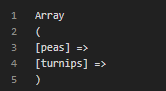 $data = ['beans' => 23, 'peas' => null, 'carrots' => 17, 'turnips' => '', 'potatoes' => 58];