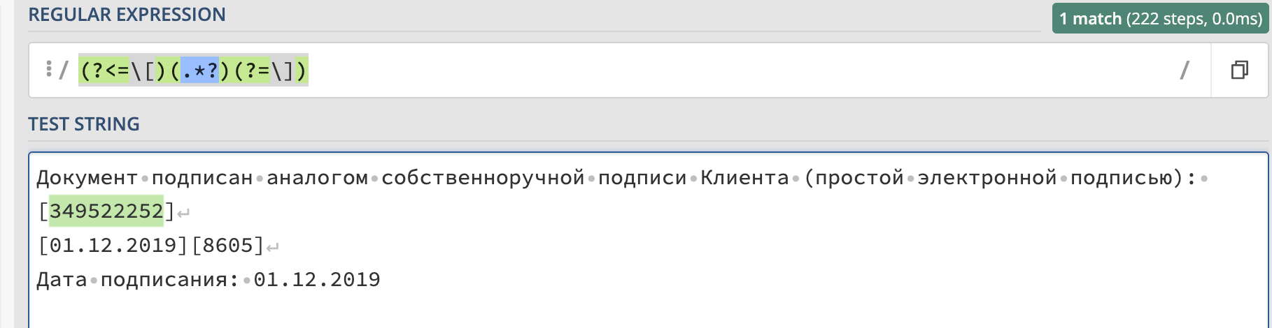 I need to extract date so result should be 01.12.2019. I fugured out how to extract something between [...]