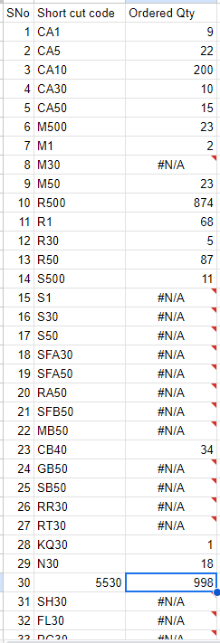 I need to find the sum of all matching items in the following data for which sumif() is going to be very lengthy and need a shorter way of doing it