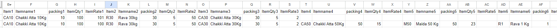 Here there are 20 items and hence a set of 4 columns repeats for every item.