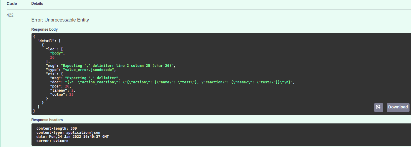 I’m trying to pass a json object like : inside a body of a post request in fastapi so that i’ll store it inside a database later or process it in any way