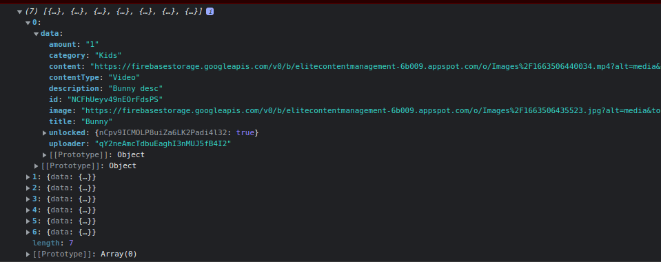 this returns and empty object yet I can clearly see in the array there is a data key and in data there is category.Why is the object returning empty?