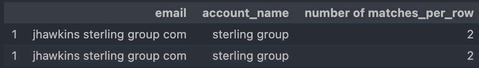 matches = sum([1 for x in row['email'].split() if x in row['name'].split()])