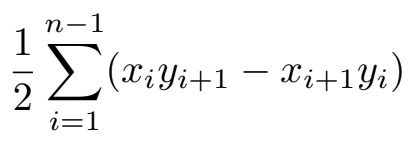 0.5 * ((df.x * df.y.shift(-1)) - (df.x.shift(-1) + df.y)).sum()