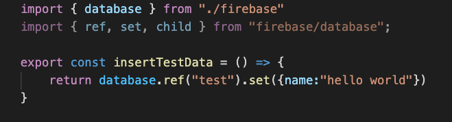 return set(ref(database, "test"), { name: "hello" })