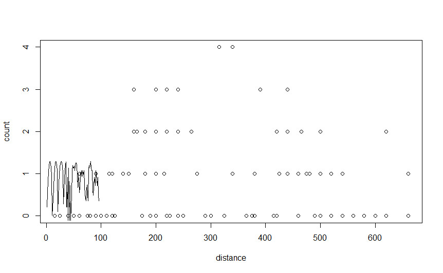 lines(count~distance, data=fit_line)