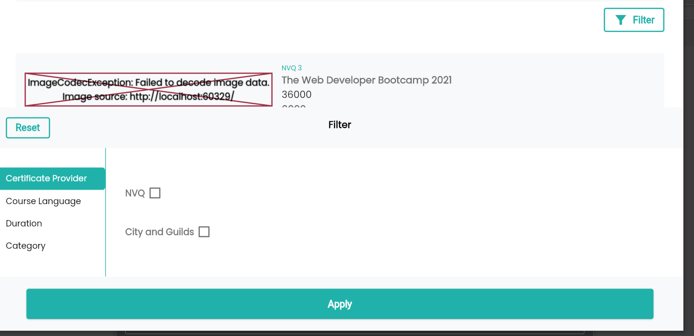 inside that same screen I have a filter button which on press will show a filter screen using the bottom sheet widget.