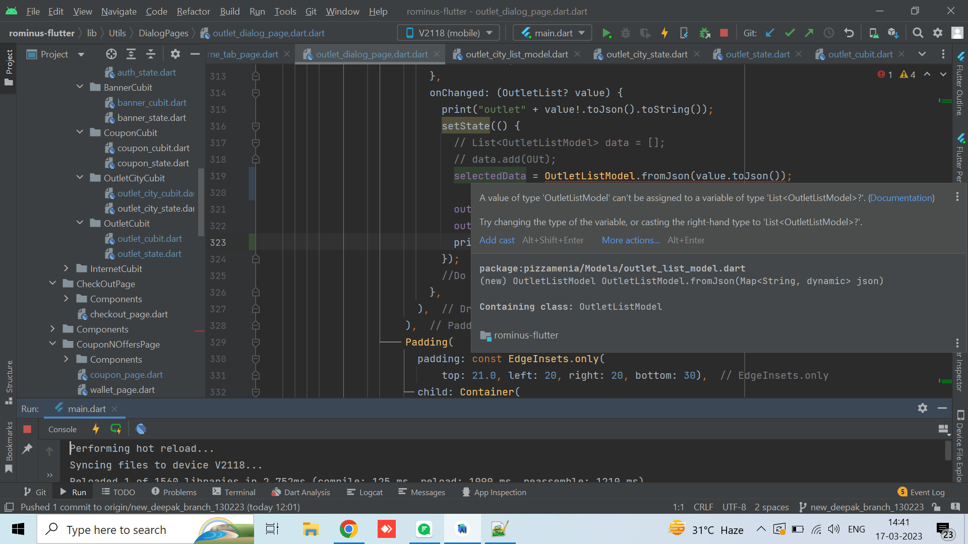 I have a error "A value of type ‘OutletListModel’ can’t be assigned to a variable of type ‘List?’"