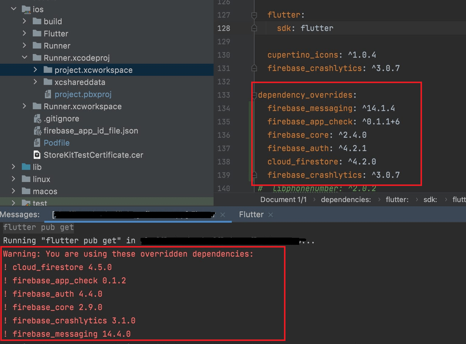 Even after moving them into the override section running a flutter pub cache clean