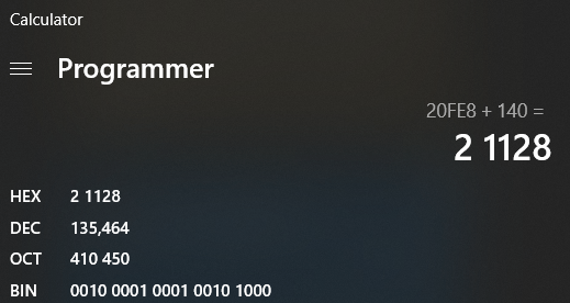 in decimal 0x140 is 320 in base 10