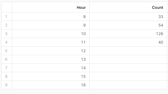 ORDER BY Hour),