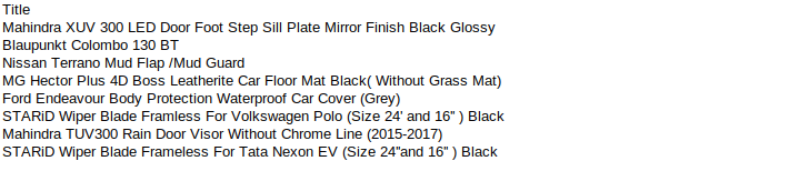 I have a dataset where I have a dataframe[‘Title’] column with car brand and accessories information.