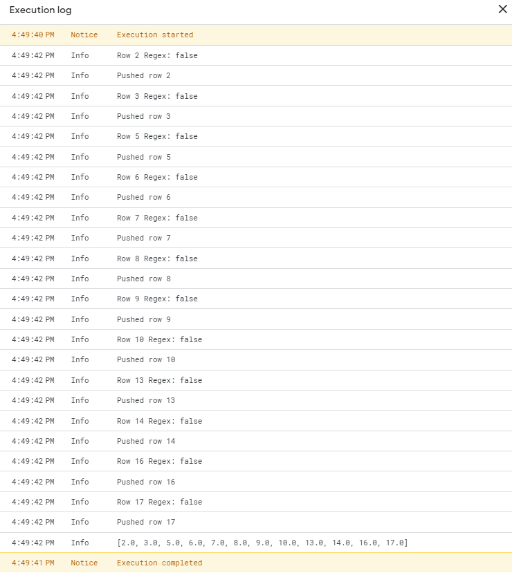 if (rowMatches) Logger.log(`Row ${n+2} Regex result: ${regex.test(row)}`);
