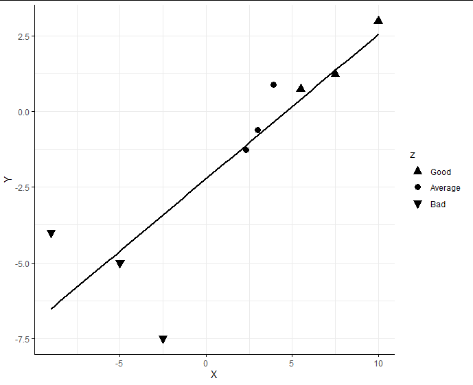 Notice that as I use the scale_shape_manual I set three shapes that are analogous to the report I am preparing, hence changing them is not possible. However, what I need is: