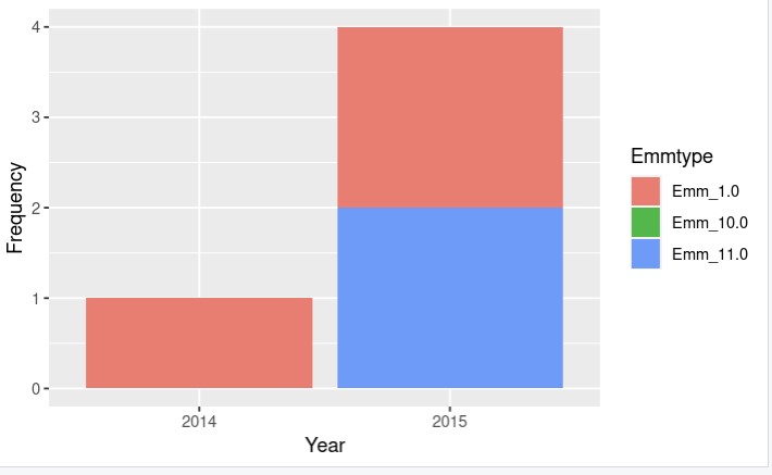 ggplot(data, aes(x = Year, y = Frequency, fill = Emmtype)) +