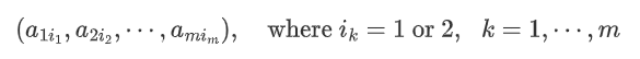 Obviously, there are 2^m such tuples in total. For example, when m=2, we will have 4 tuples, which are:
