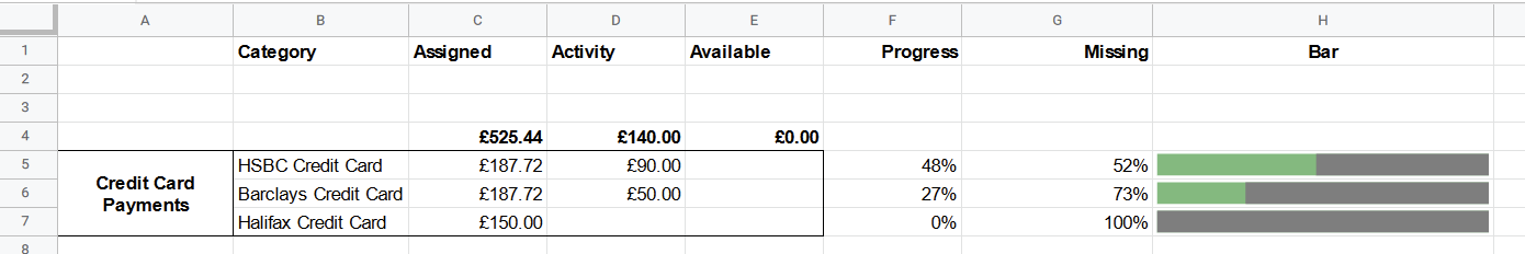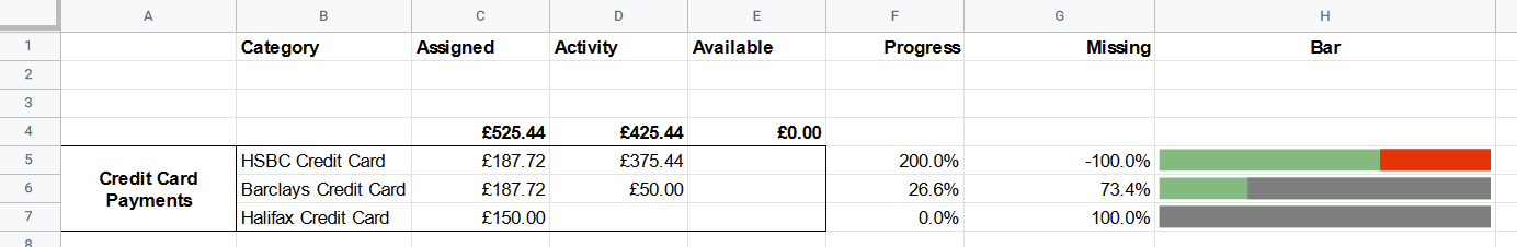I have the following in my Google Sheets: