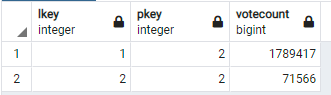 SELECT lkey, max(votecount) FROM VOTES