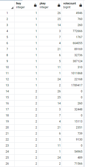 ORDER BY v.ikey, v.votecount DESC;