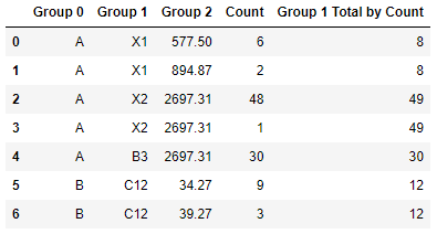 | Group 0 | Group 1 | Group 2 | Count | Group 1 Total by Count |