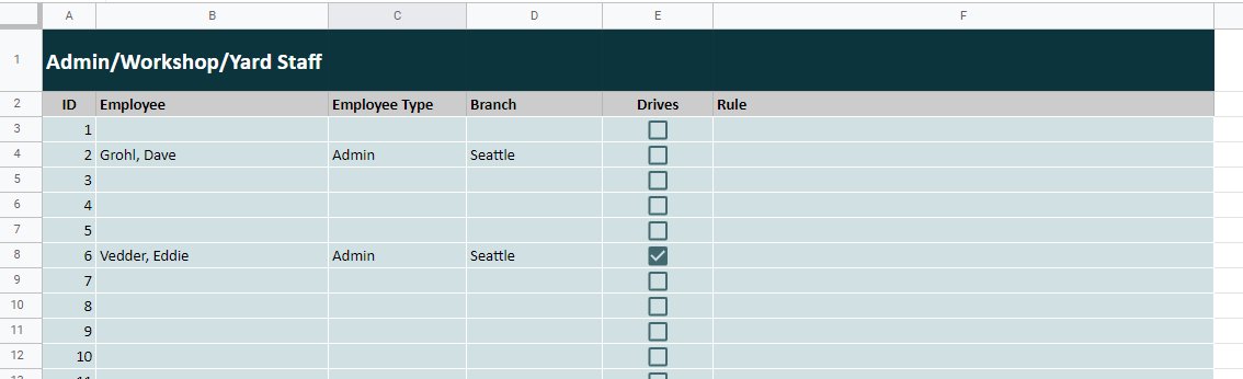 I have a spreadsheet with a Home Page which has buttons to open several sheets, including the "Admin Drivers" sheet.