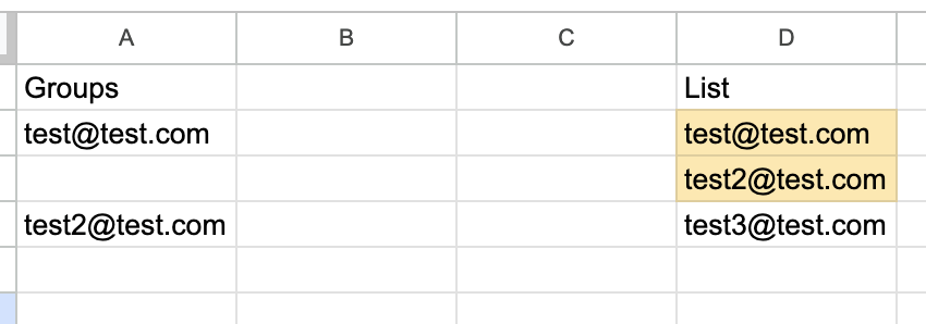 I would like to create a Google Sheets form where participants can organize themselves into groups of three. Specifically, I want a cell in the "Email List" column (which is fixed and cannot be edited by participants) to be highlighted when a participant enters their email,