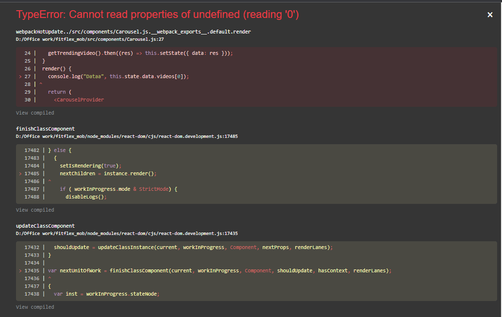 This is because you are trying to get an index of undefined. Before setting the state to data, the state key ‘videos’ is undefined. You can try in render: